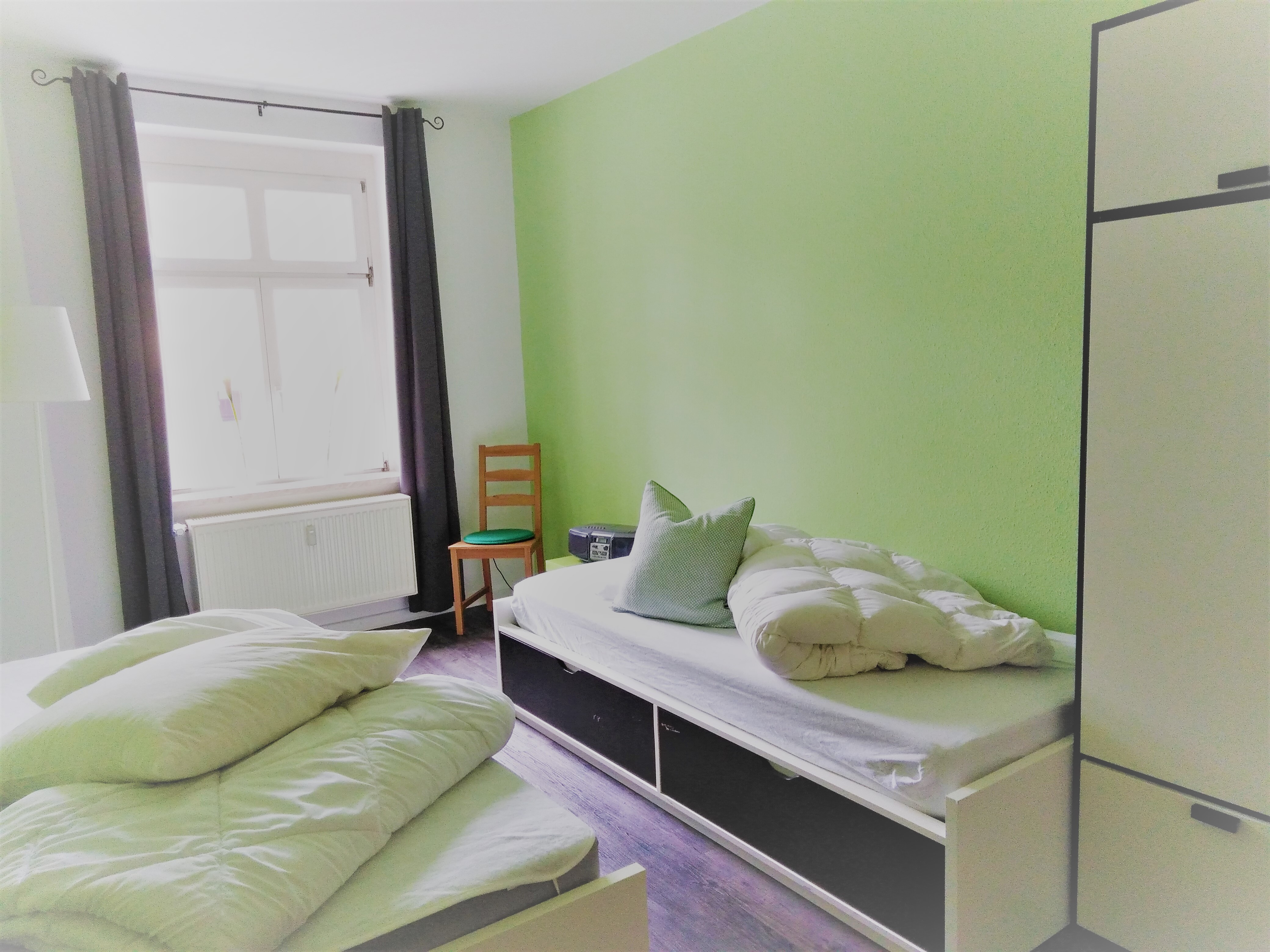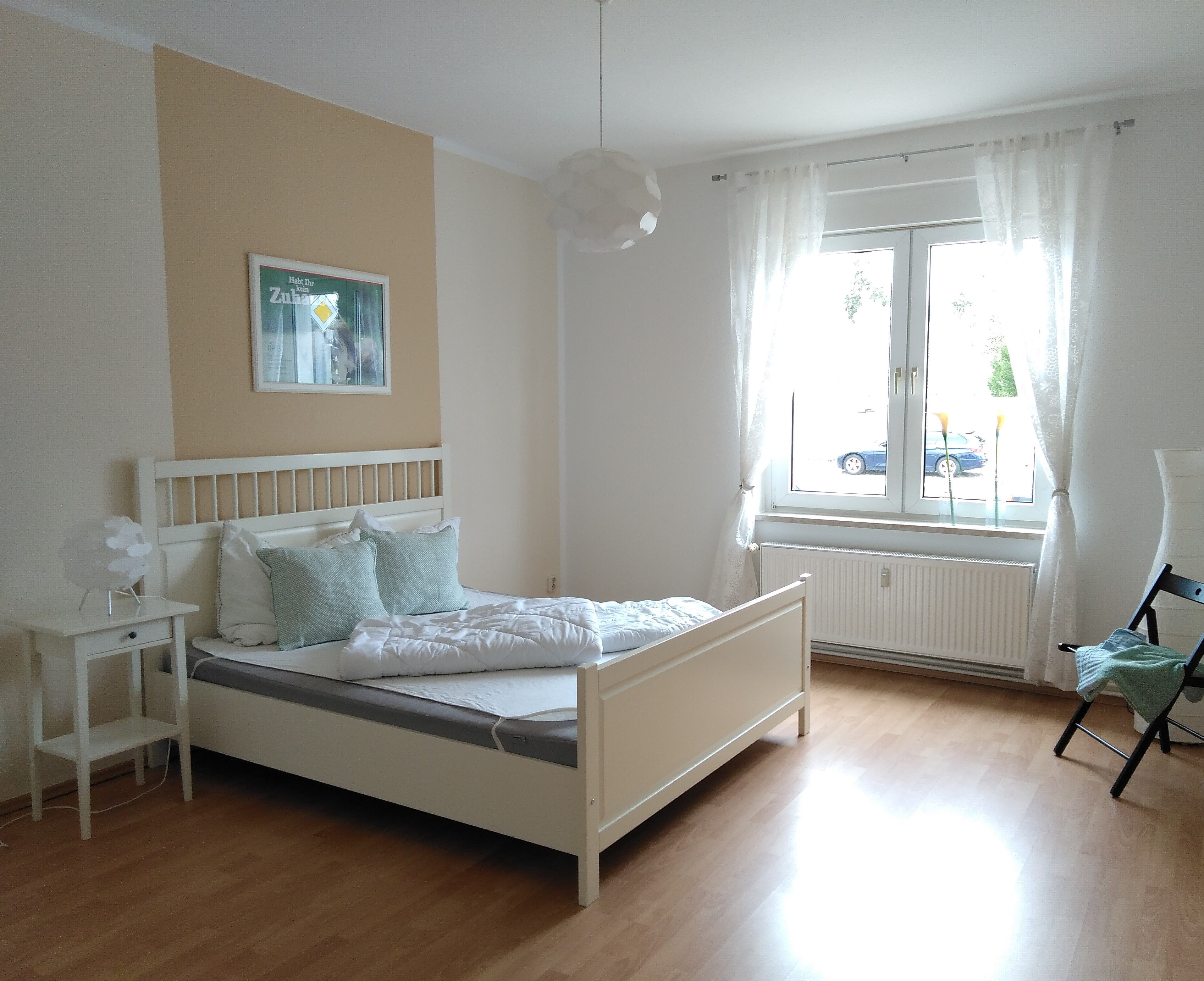Die Zeit des neuen Bauens – nirgendwo anders in der Stadt fühlen Sie die Zwanziger Jahre in Wohnbauten so sehr wie in Brückfeld. Genau da, neben dem Elbauenpark und der MDCC-Arena liegt sie – unsere charmante 3-Raum-Wohnung für bis zu vier Personen. Mit den FCM-Farben blau/weiß im gemütlich ausgestatteten Wohnzimmer lässt sich der ereignisreiche Tag in Magdeburg entspannt ausklingen. Alle notwendigen Utensilien in der Küche sowie im Tageslichtbad mit Wanne garantieren in der Hochparterre-Wohnung für einen sorgenfreien Aufenthalt. Das Doppelbett befindet sich im Schlafzimmer und die zwei einzelnen Betten in einem extra Wohnraum der Gästewohnung.