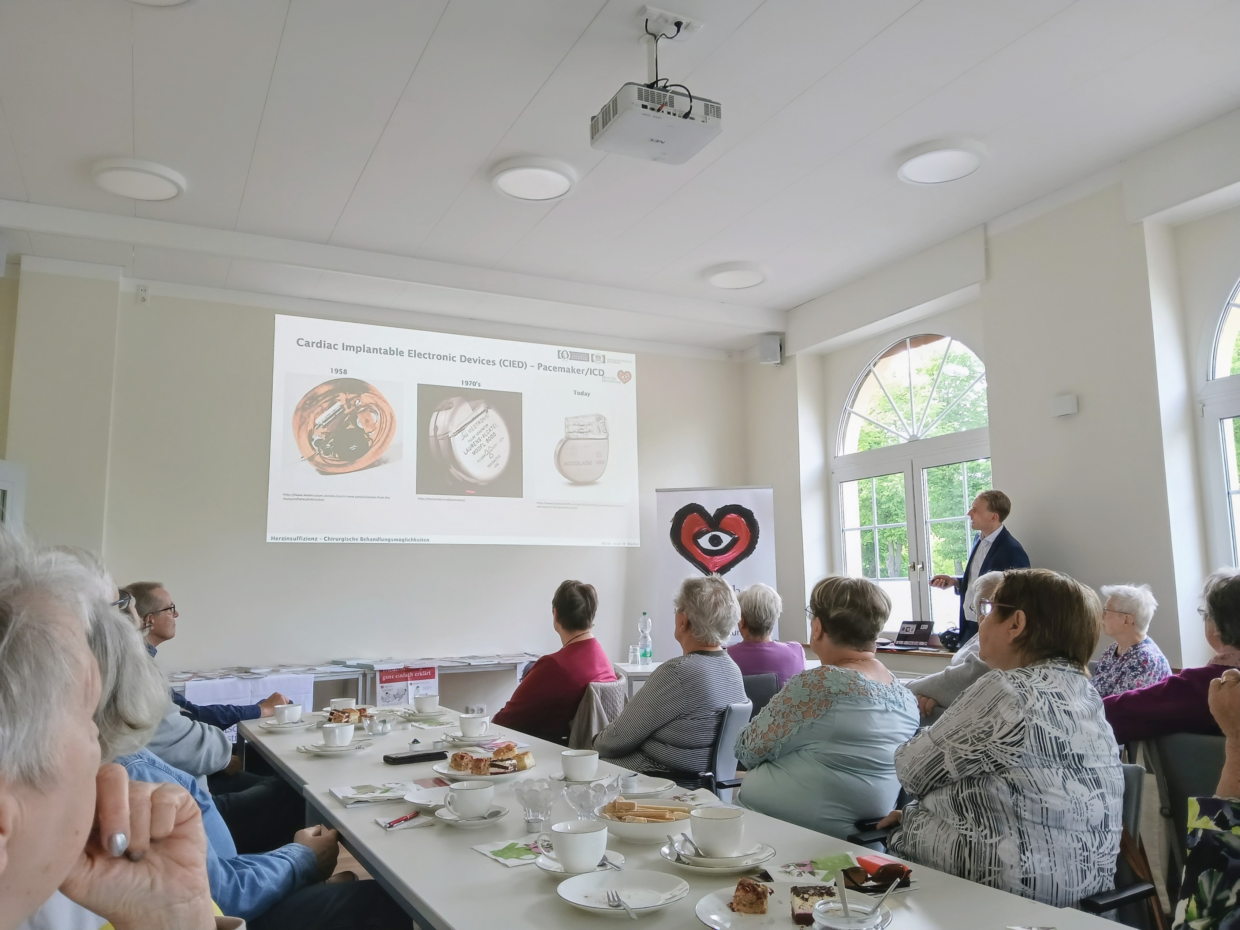 Im Anschluss nahm sich Dr. med. Wacker, Facharzt für Herz- und Thoraxchirurgie an der Universitätsklinik Magdeburg, Zeit, um anschaulich zu erklären, was eine Herzinsuffizienz ist, welche Formen es gibt und wodurch sie entstehen kann. Besonders im Fokus standen dabei moderne chirurgische Behandlungsmöglichkeiten, die heute vielen Betroffenen helfen können. Mit verständlichen Erklärungen, eindrucksvollen Bildern und einer offenen Fragerunde zum Abschluss gelang es Dr. Wacker, ein schwieriges Thema greifbar zu machen.