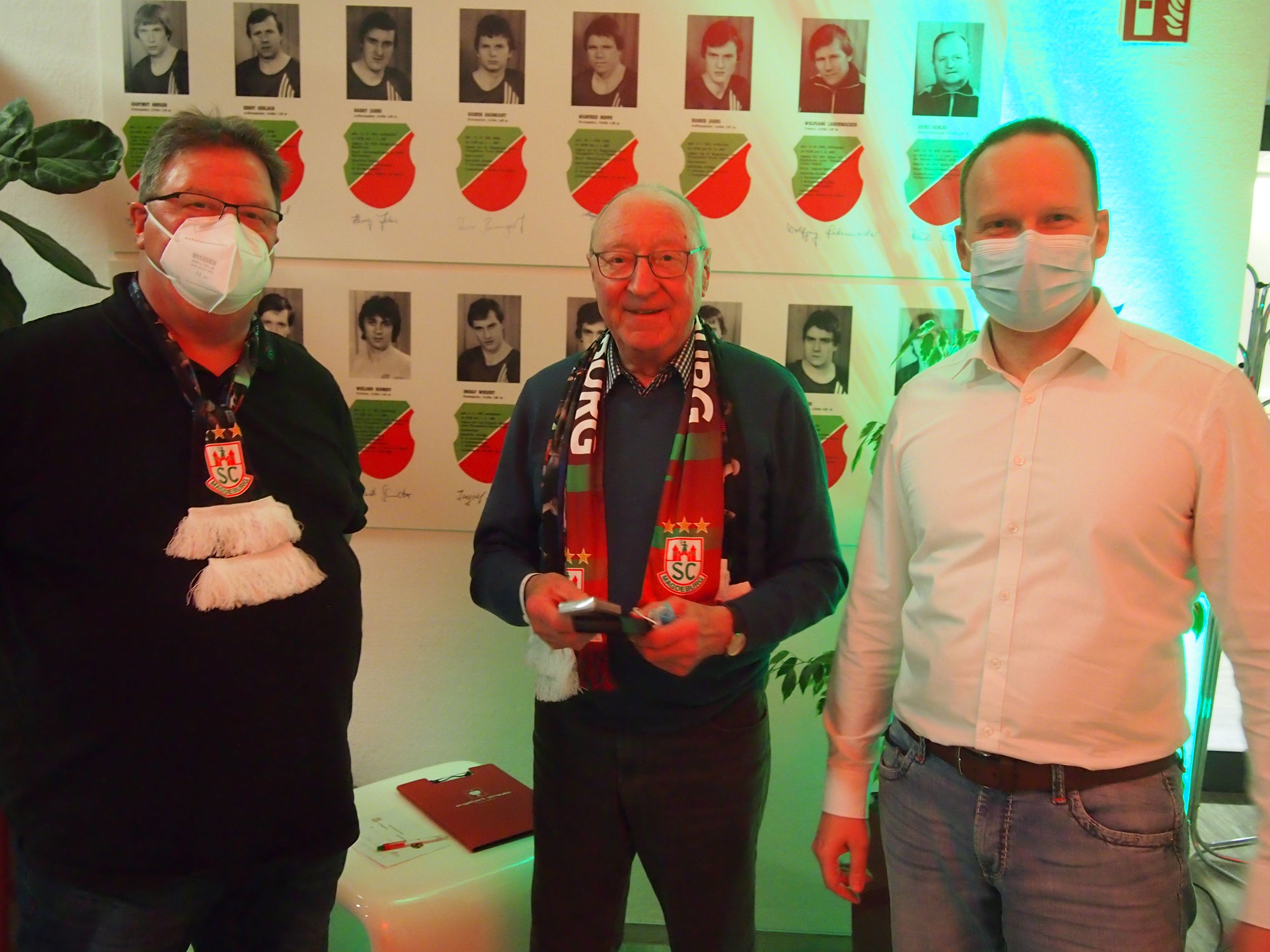 Dirk Kunze aus der Neuen Neustadt ist begeisterter Fan der Magdeburger Handballer und, wenn es die Arbeit zulässt, bei jedem Spiel in der Halle. Als Handballtrainer beim Barleber HC ist er vom Fach und hat den Jugendwart seines Vereins gleich zum Spiel mitgebracht. Kleiner Wermutstropfen blieben allerdings die spärlich besetzte Halle aufgrund der Pandemieauflagen und das von vielen Gästen geschätzte aber in diesem Jahr abgesagte Meet & Great im Anschluss an das Spiel. Hier konnten vor der Pandemie mehreren Spielern und oft auch Steffen Stiebler in der Klaus Miesner Lounge Fragen gestellt, gemeinsame Fotos geschossen und Autogramme erhascht werden. Doch die Angst vor Ansteckung ist groß und so hatten die Gäste Verständnis für den Schutz der Spieler und auch ihren eigenen Schutz. Wir sind zuversichtlich, dass dies im nächsten Jahr wieder klappen wird.