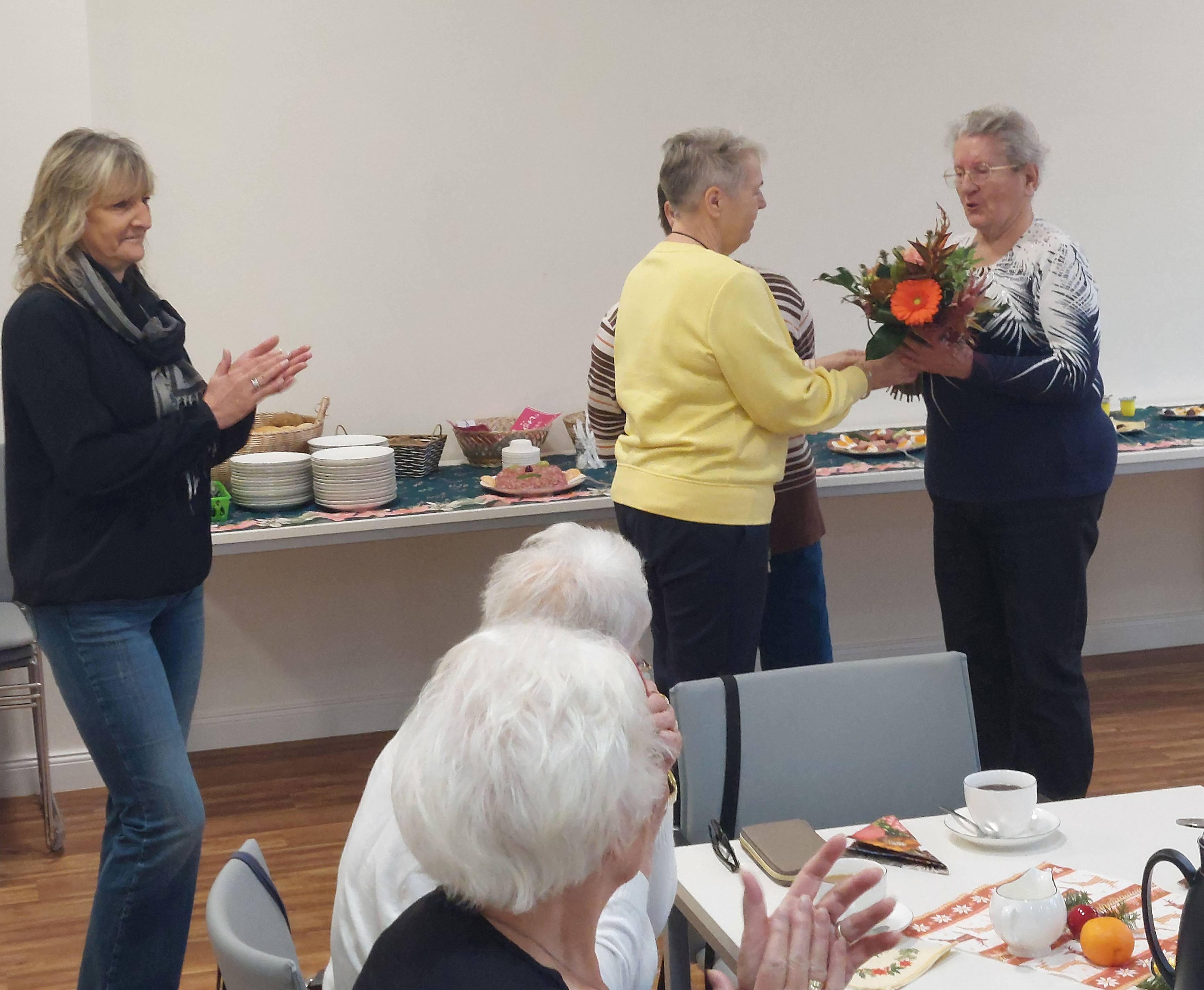 Heute, am 10.12.2025, war sie beim Mieterfrühstück das letzte Mal als Helferin im Einsatz. Ab dem neuen Jahr wird sie die Treffen als Gast genießen – und wir freuen uns, sie weiterhin in unserer Gemeinschaft zu sehen. Ein kleines Blumendankeschön überreichten die Mitarbeiterinnen der 1893, Frau Silke Bogel und Frau Schulze. Wir danken Rosemarie Köhler von Herzen für ihr jahrzehntelanges Engagement und wünschen ihr alles Gute für die kommende Zeit!