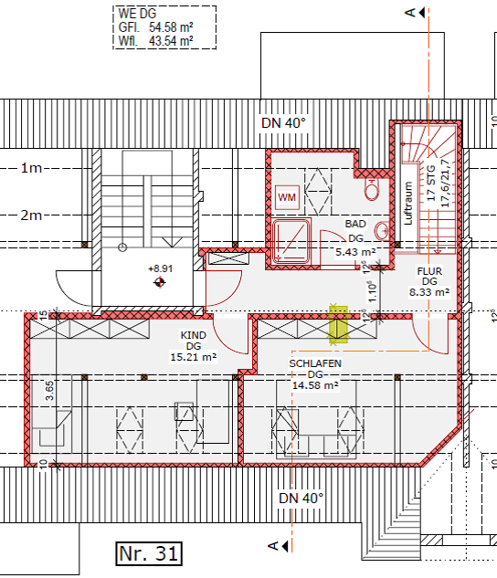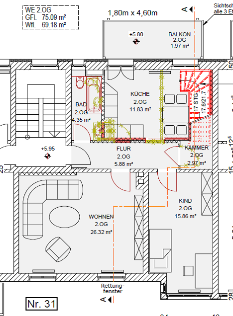Der Wohnraum für Familien mit mehreren Kindern ist in dem Quartier östliche Leipziger Straße knapp bemessen. Deshalb haben wir uns im Zuge der Baumaßnahme entschlossen, in der Helmholtzstraße 31 eine 4-Raum-Maisonette-Wohnung mit ca. 112 m² auszubauen. Die geplanten Grundrisse für die zwei Etagen sehen Sie ebenfalls in der Bildergalerie. Der Bauantrag wurde in der 39. KW 2021 eingereicht. Jedoch liegt uns derzeit die Baugenehmigung noch nicht vor.
