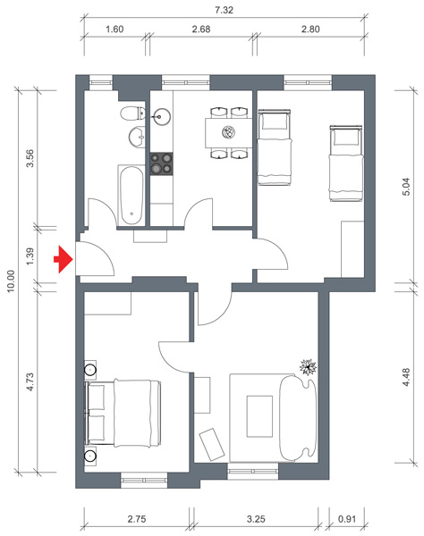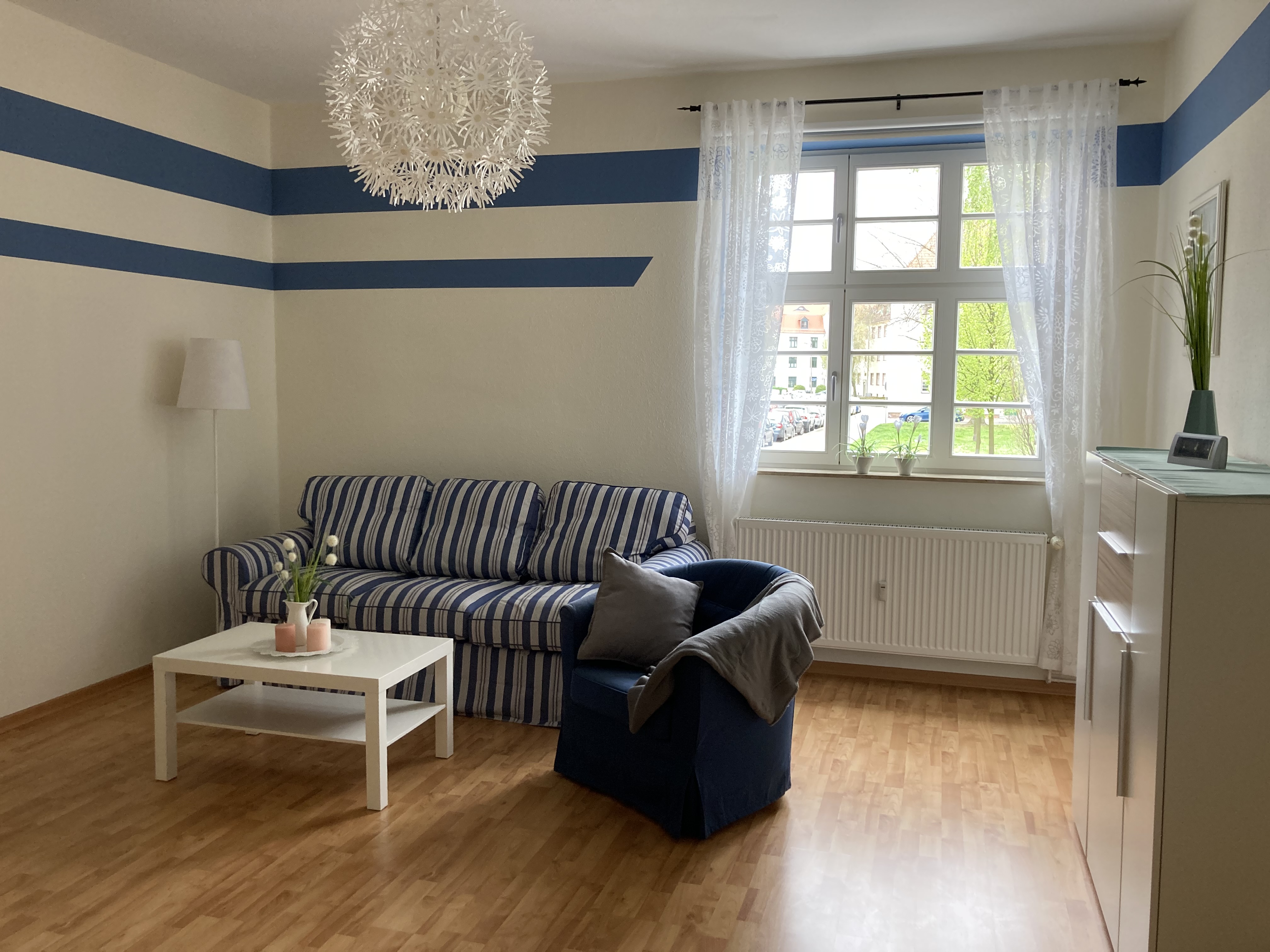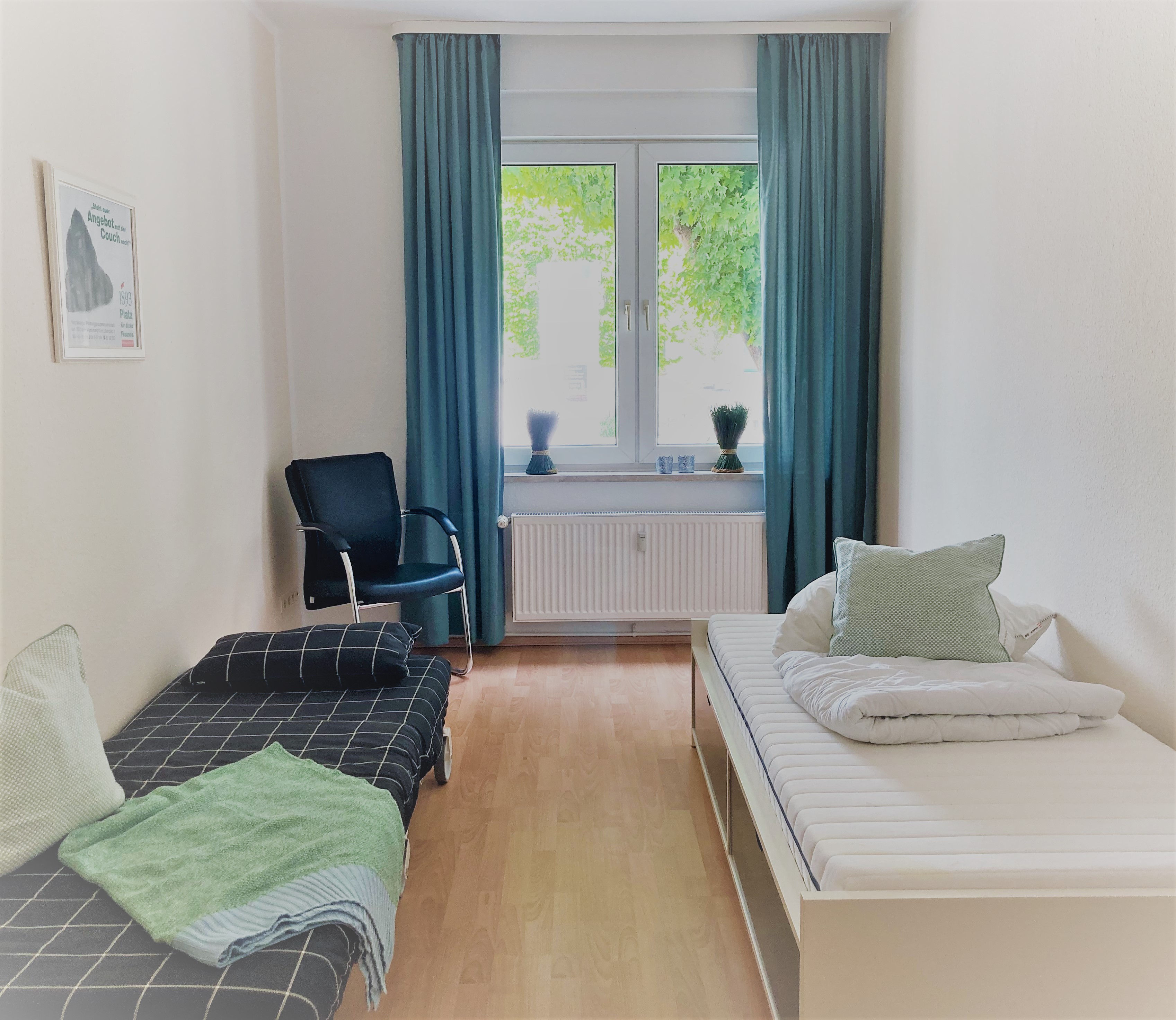Die Zeit des neuen Bauens – nirgendwo anders in der Stadt fühlen Sie die Zwanziger Jahre in Wohnbauten so sehr wie in Brückfeld. Genau da, neben dem Elbauenpark und der MDCC-Arena liegt sie – unsere charmante 3-Raum-Wohnung für bis zu vier Personen. Mit den FCM-Farben blau/weiß im gemütlich ausgestatteten Wohnzimmer lässt sich der ereignisreiche Tag in Magdeburg entspannt ausklingen. Alle notwendigen Utensilien in der Küche sowie im Tageslichtbad mit Wanne garantieren in der Hochparterre-Wohnung für einen sorgenfreien Aufenthalt. Das Doppelbett befindet sich im Schlafzimmer und die zwei einzelnen Betten in einem extra Wohnraum der Gästewohnung.