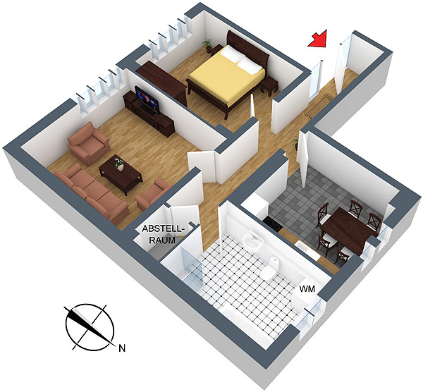 2-Raum-Wohnung bis 4 Personen