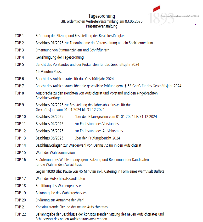 Am 13. Juni fand die 32. Mitgliedervertreterversammlung der 1893 im Ratswaagehotel statt.