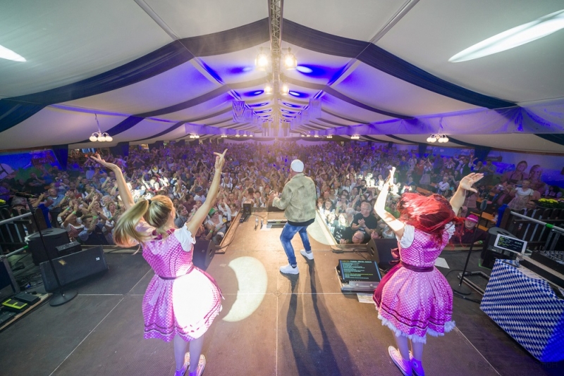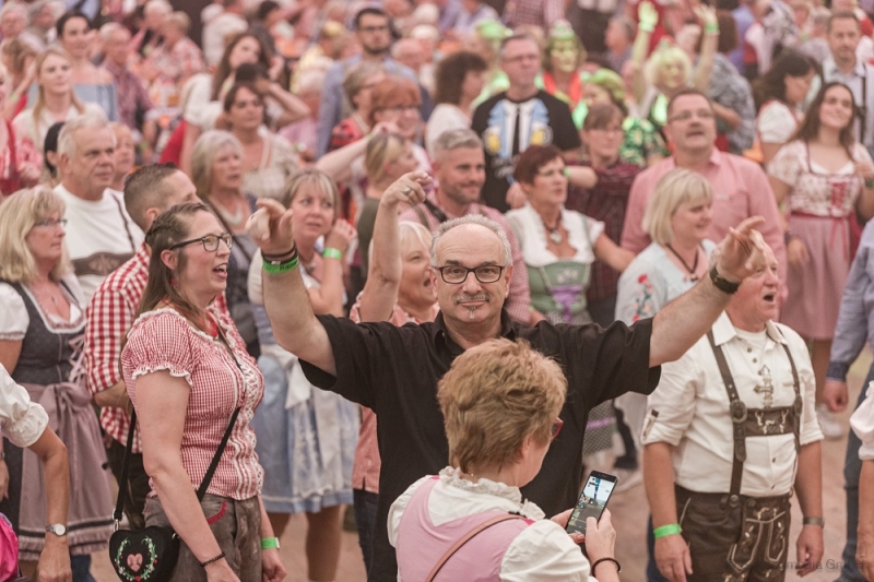 Gleich beim ersten Auftritt der Gruppe D´ MOOSNER kamen die Gäste in "Wiesnstimmung". Sie sangen und schunkelten bei vielen bekannten Musiktiteln mit und bedankten sich bei den Musikern mit viel Applaus. Auch die Musik des DJ MATTY VALENTINO ließ das Festzelt wackeln. Das Repertoire war breit gefächert und hielt für jedes Alter etwas bereit. Die Tanzfläche war gut gefüllt, alle haben ausgelassen die tolle Stimmung genossen. Ihren Höhepunkt erreichte das Oktoberfest jedoch mit dem Auftritt von DJ ÖTZI.