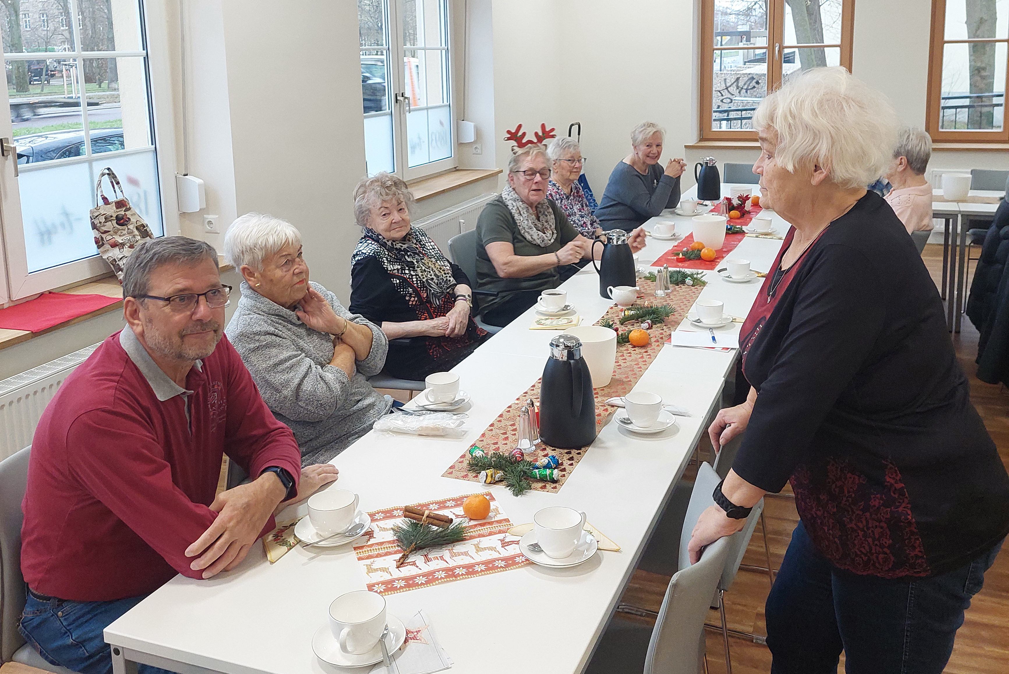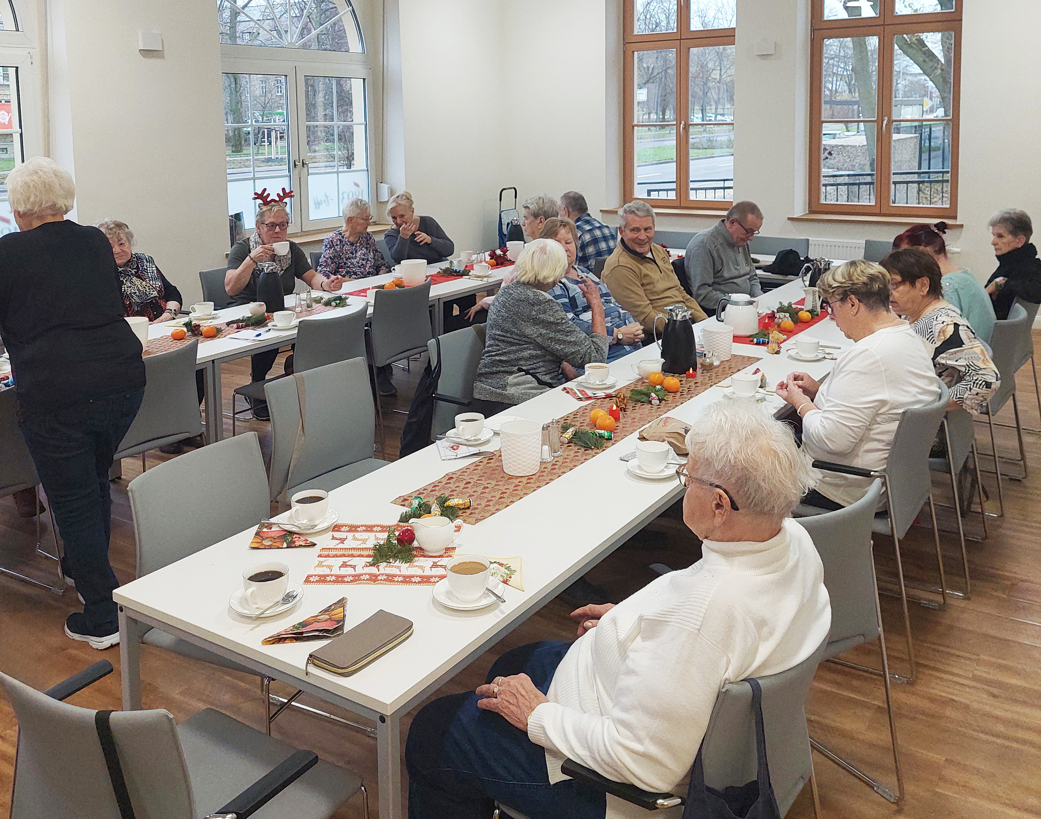 Wie viel Mühe sich unsere freiwilligen Helfer bei den monatlich stattfindenden Mieterfrühstücken geben, konnten wir auch diesmal erleben. Nicht nur das reichhaltige Buffet hat wieder alle Erwartungen übertroffen – auch die festliche Dekoration sorgte für eine gemütliche Atmosphäre: Weihnachtliche Tischläufer, Kerzen, Tannengrün, Mandarinen und Schokoladenfiguren schmückten die Tafel.